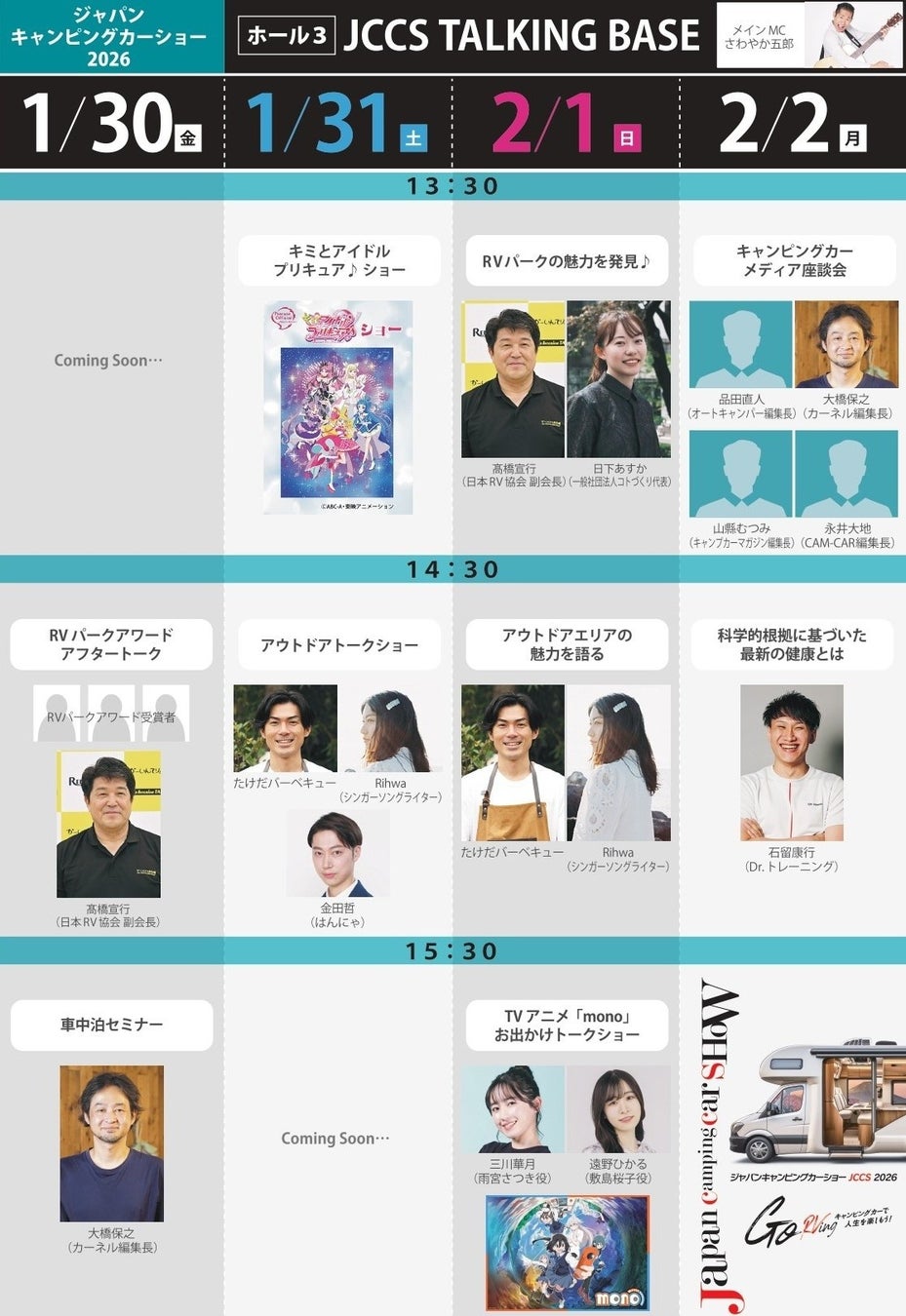 ジャパンキャンピングカーショー2026ステージ出演者第2弾&タイムテーブル公開!