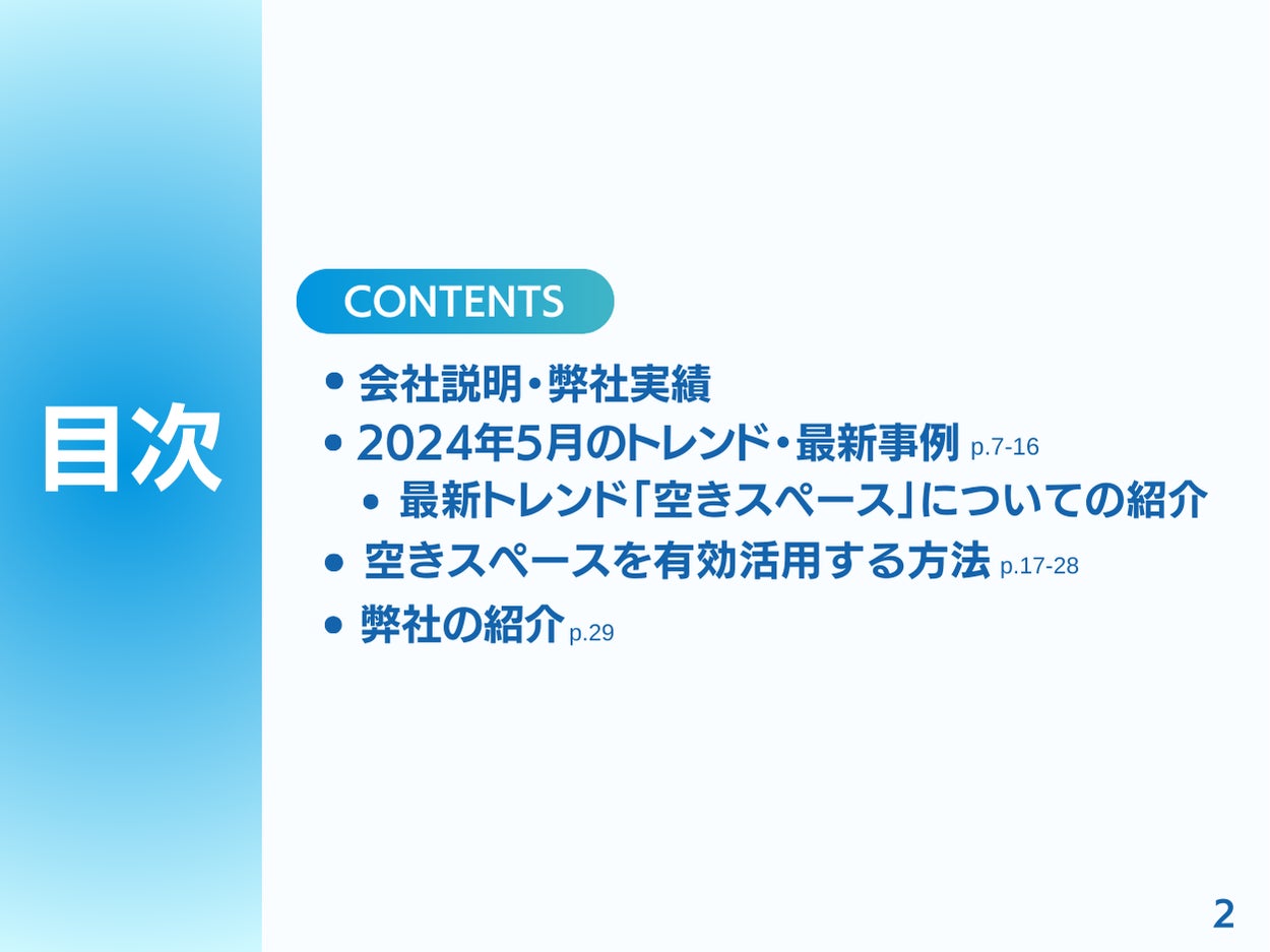 本レポートは、空きスペースを活用した事業に関する、2024年5月時点の最新トレンドについてまとめています。