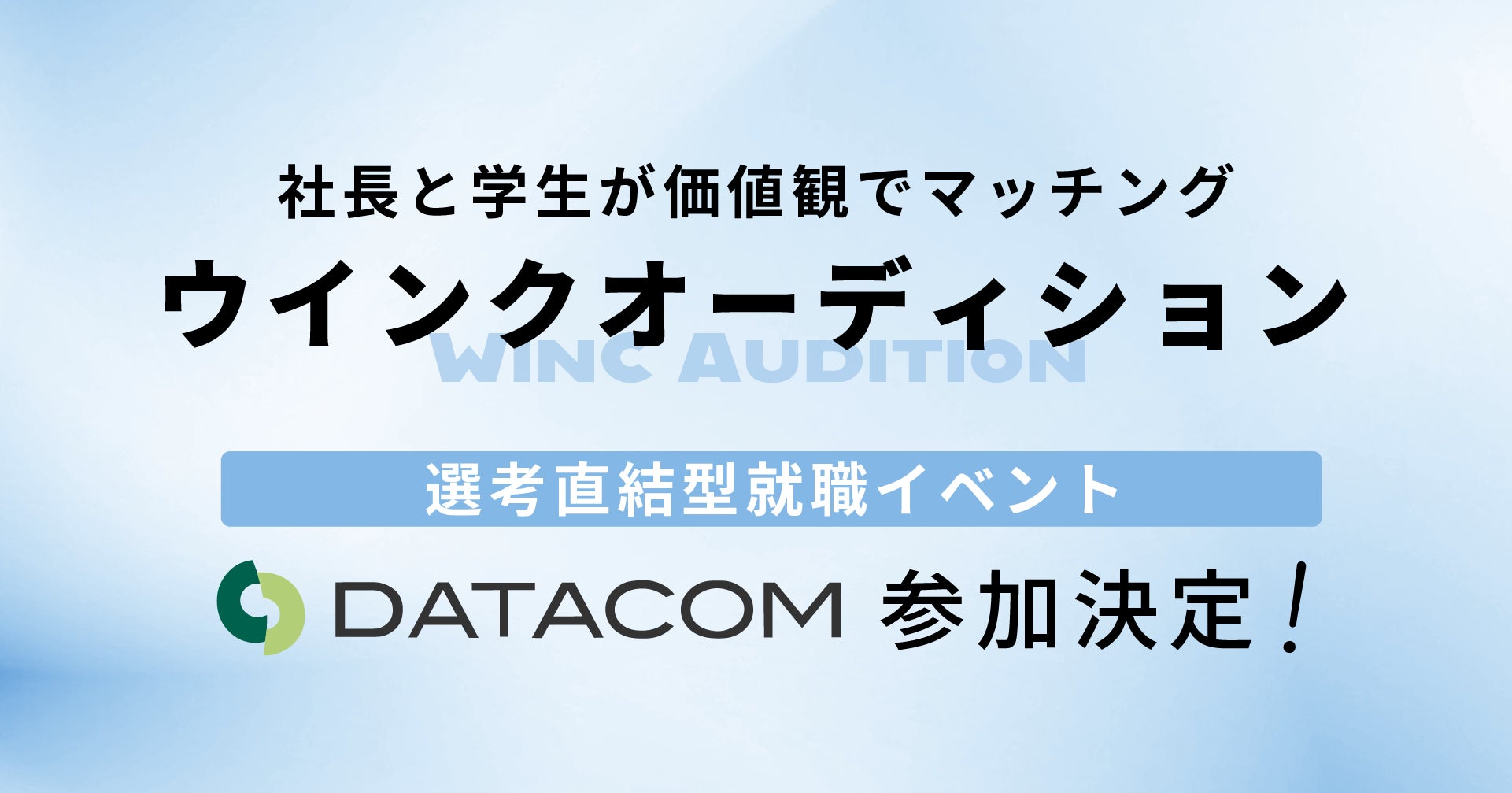 小売業界に特化した商品・顧客分析ソリューションを始めとする、パッケージシステムを開発・提供しているデータコム株式会社(本社:宮城県仙台市、代表取締役:小野寺修一)は、2024年8月6日(火)に社長と学生が価値観でマッチングする選考直結型就職イベント「ウインクオーディション」に参加することをご報告いたします。