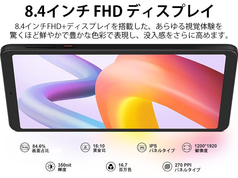 8.4インチ / Android 13 / 9GB+128GB+1TB TF拡張 /4G LTE / FHD IPSインセルディスプレイ / 3.5mmヘッドホンジャック