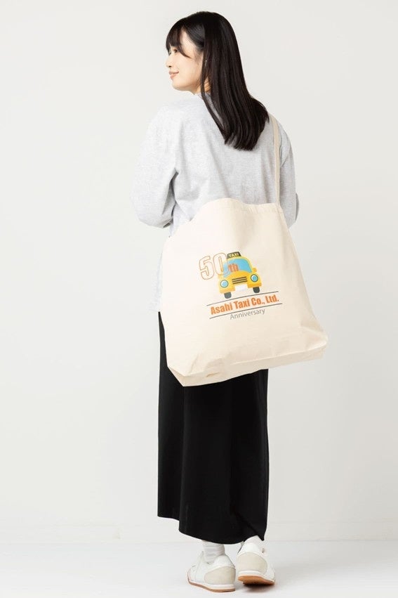 キャラクターやメンバー、グループに合わせてカラーを選べるため、推し活アイテムに最適です。うちわが横向きにすっぽり入るワイド設計で、持ち手付け根のリングにはチャームを付けることも可能。ライブやコミケなどのイベント物販はもちろん、普段使いのオリジナルバッグ制作にも適した一枚です。