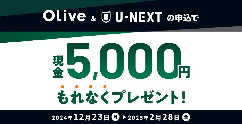 12/23開始!Olive&U-NEXT もれなく現金5,000円がもらえるコラボキャンペーンスタート!