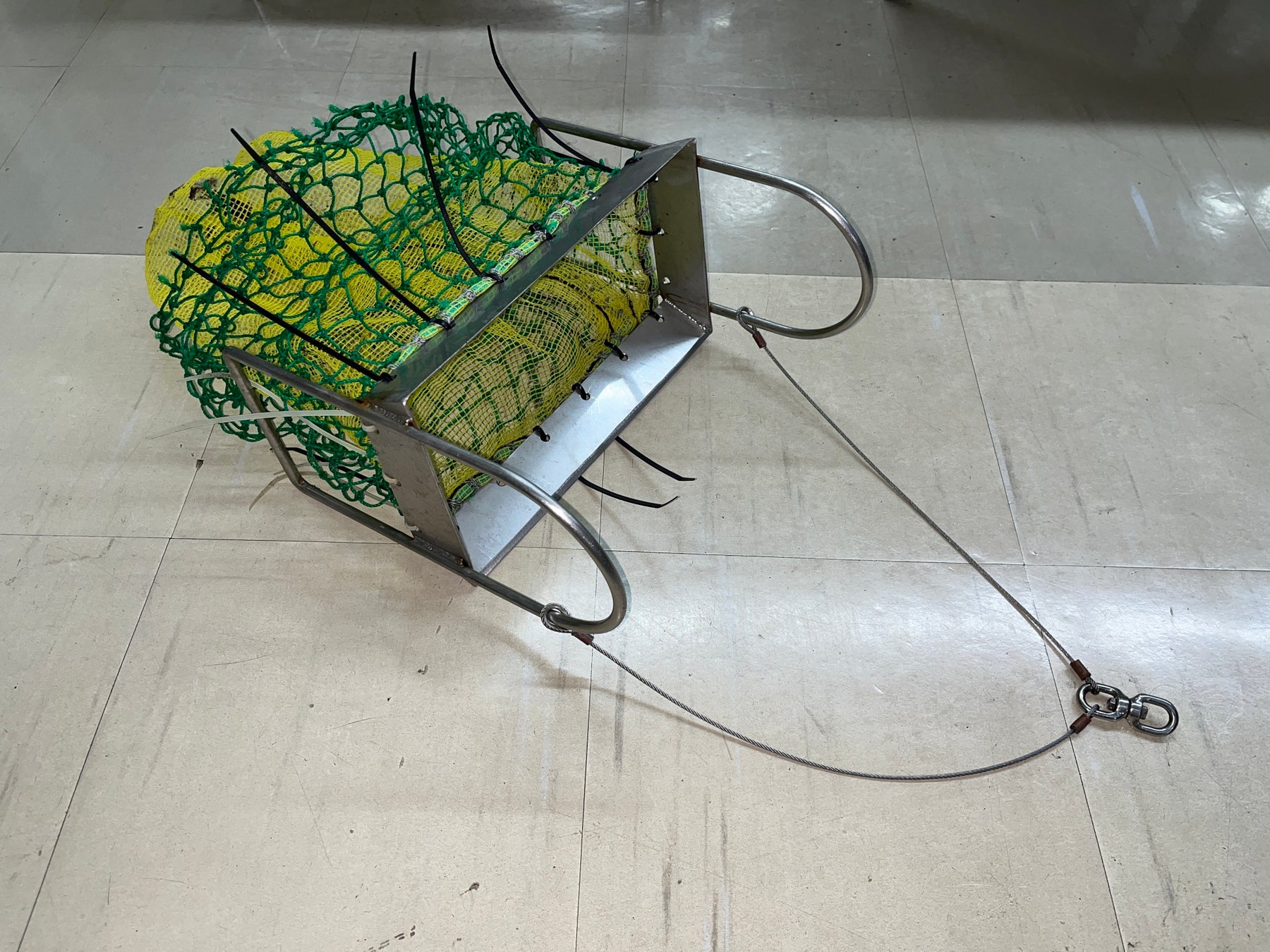 研究者は貝を採集し、調査するために様々な工夫をこらしてきました。それは道具に現れています。江戸時代から現代まで、いろいろな研究者によるイチオシの道具を展示します。写真は持ち運びが簡単で、海だけでなく川や池でも使えるように独自開発された枠型軽量ドレッジ。(提供:ざっこCLUB・佐藤達也氏、三重県立水産高等学校・小村雄作氏)