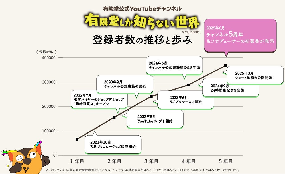 本チャンネルは2020年6月30日に「有隣堂しか知らない世界」として本格運用を開始し、登録者数は約5.6倍と飛躍的な成長を遂げました。この成長の背景には、毎年新たな挑戦を積み重ねてきたことがあります。