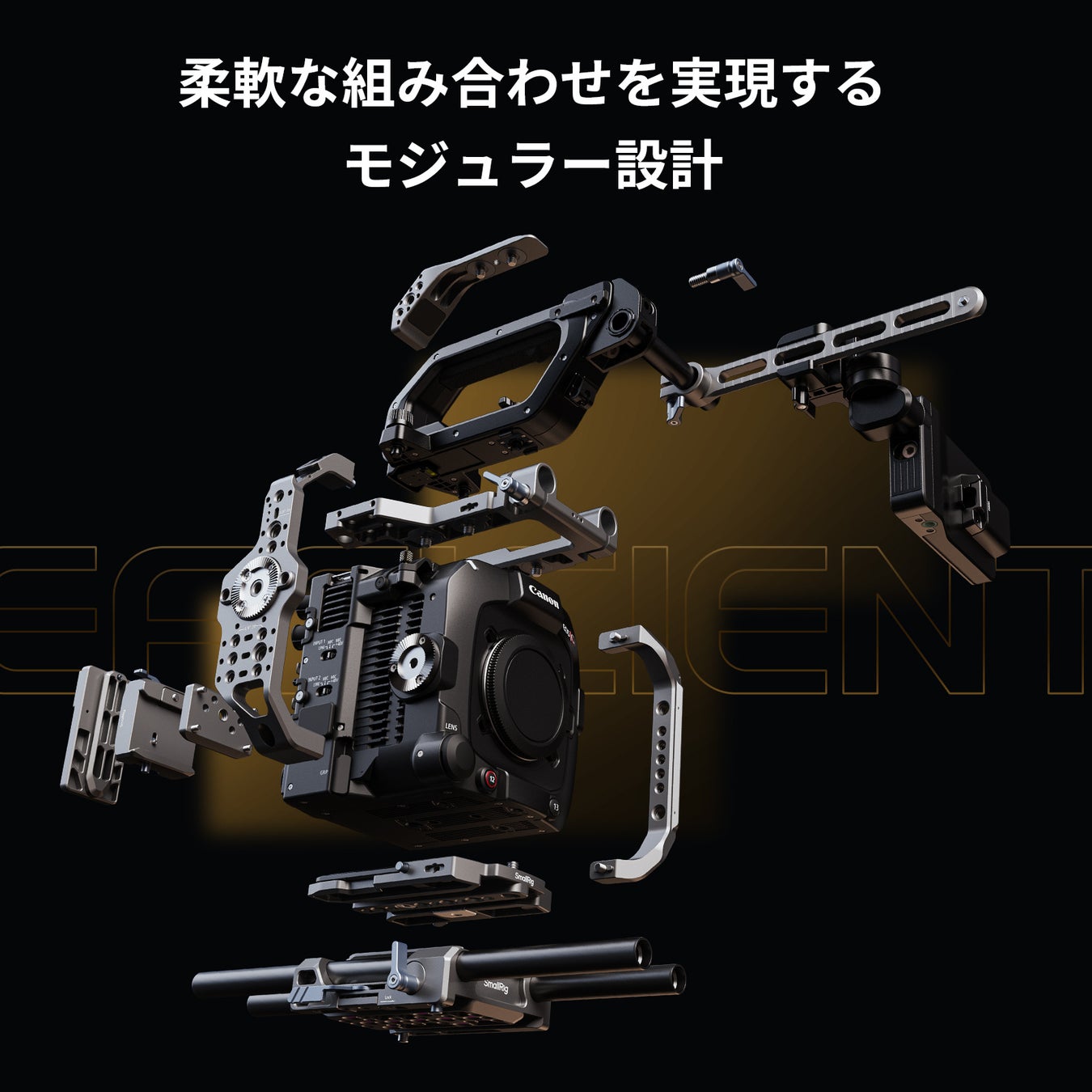 Canon EOS C400用アドバンスケージキットは、映画制作者に多用途の撮影ソリューションを提供するように設計されています。キット全体は柔軟な組み合わせを実現するモジュラー設計を採用しております。