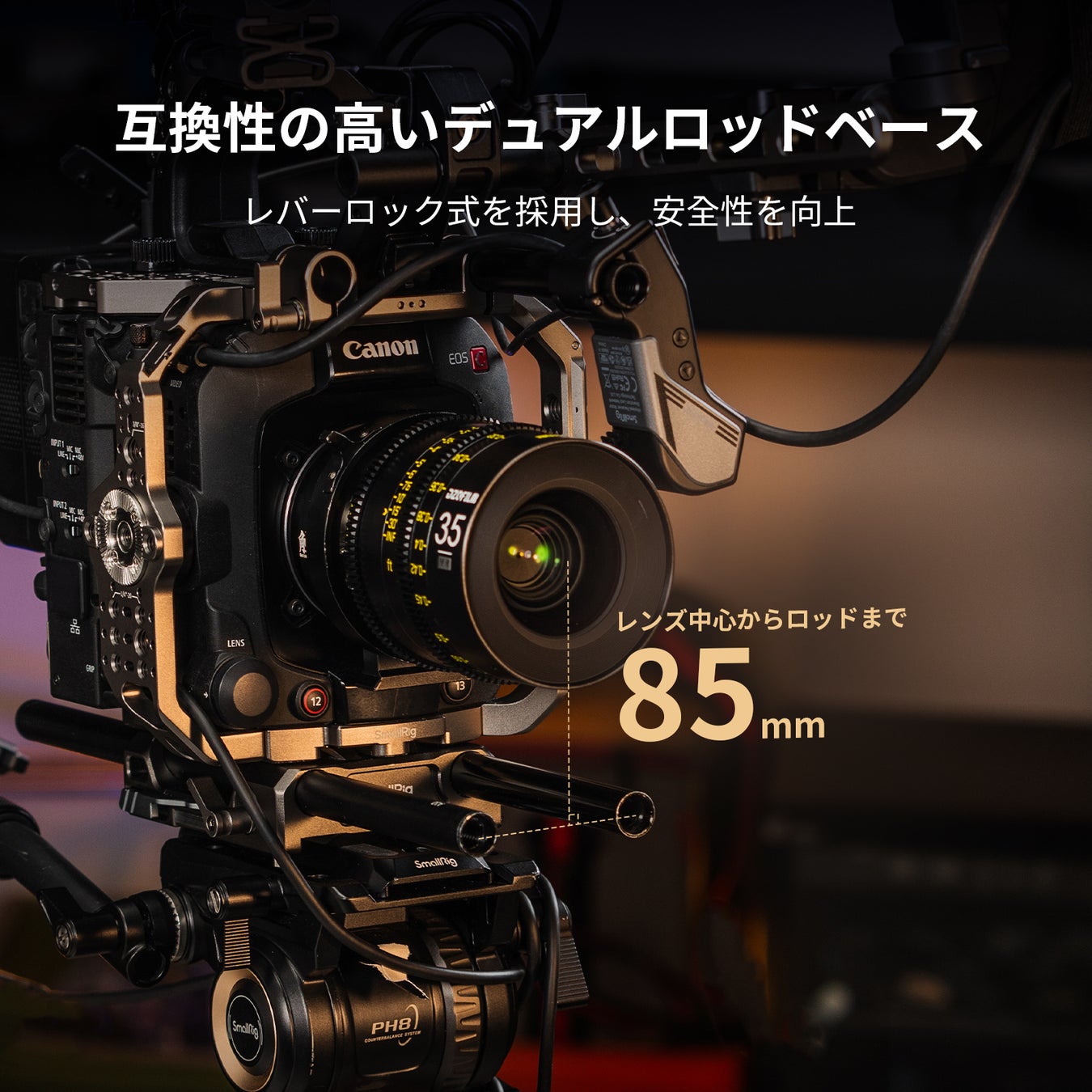 互換性の高い15mmデュアルロッドベースを備え、レバーロック式の設計を採用し、機材の脱着に便利し安全性にも優れ。