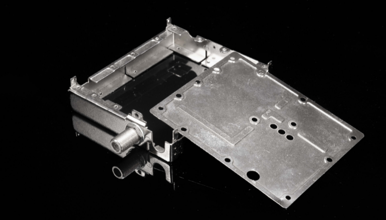 BtoBの世界では弱電業界などと呼ばれることが多いが、私たちが普段利用している家庭用の電気製品や通信機器、自動車などには様々な精密部品が使われている。部品の大半は、下画像のような、薄い金属の板に力を加えて、何らかの形に変形させたものだ。