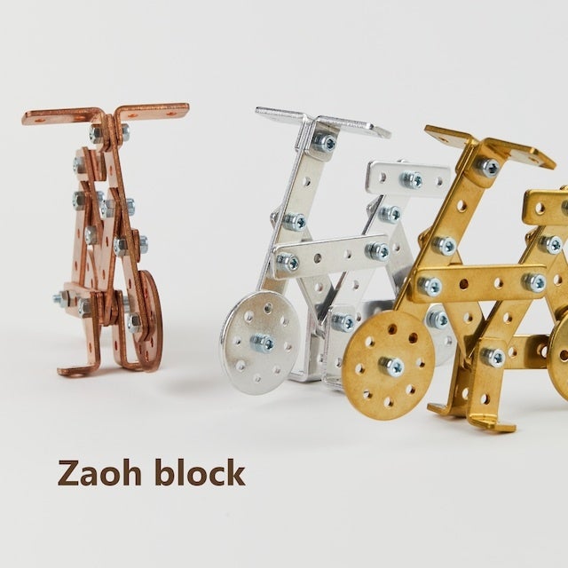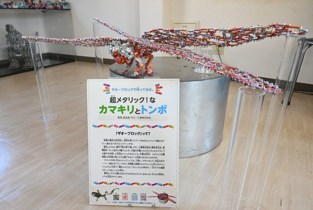 この難題を「商品ではなくアートや玩具、雑貨にする」「端材のまま売る」という剛腕で乗り切ったのが、自社開発商品「ザオーブロック」だ。上画像で紹介した怪獣は「ザオーブロック」を象徴する展示品で非売品とのことだが、ボルトとナットを使って穴が空いた金属(アルミ)パーツを組み立てる「ザオーブロック」シリーズは「日本で一番面倒くさいブロック」というキャッチフレーズで、手応えのある玩具としてワークショップや通信販売でも人気を博している。