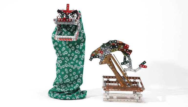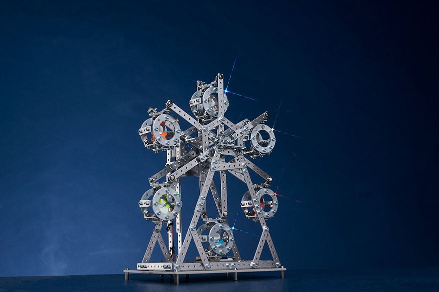 端材のセットをボルトとナットを使って組み上げ、形を作っていく。