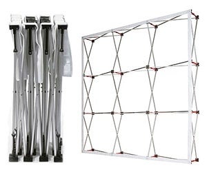 骨組みを広げるだけの簡単設置!メディアはマジックテープで張り付けるのみ!展示会やイベントブース、記者会見の背景にもおすすめのバックボードが期間限定キャンペーン中です。