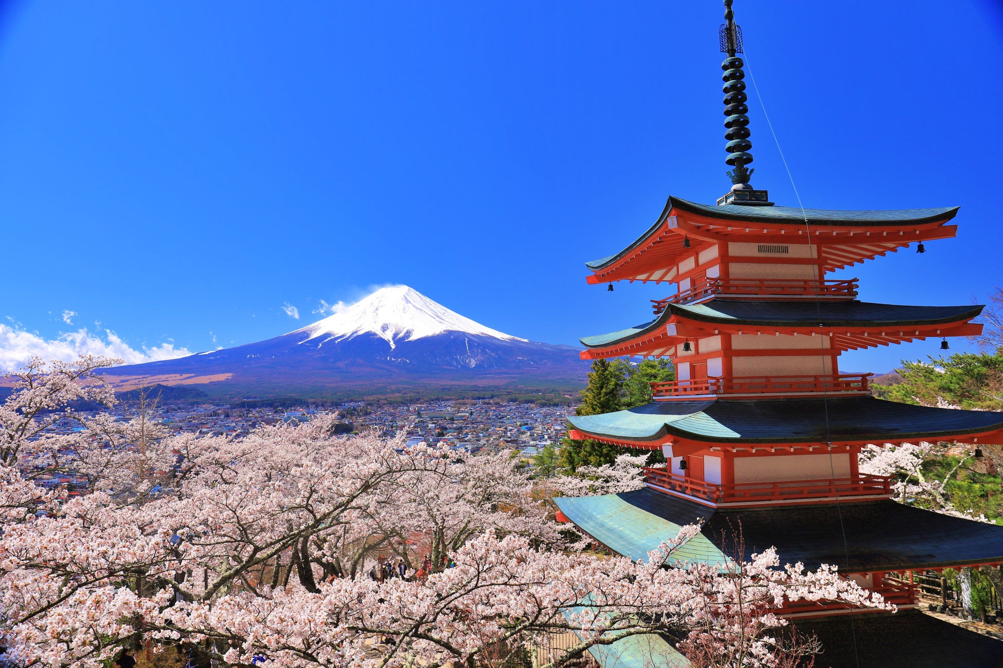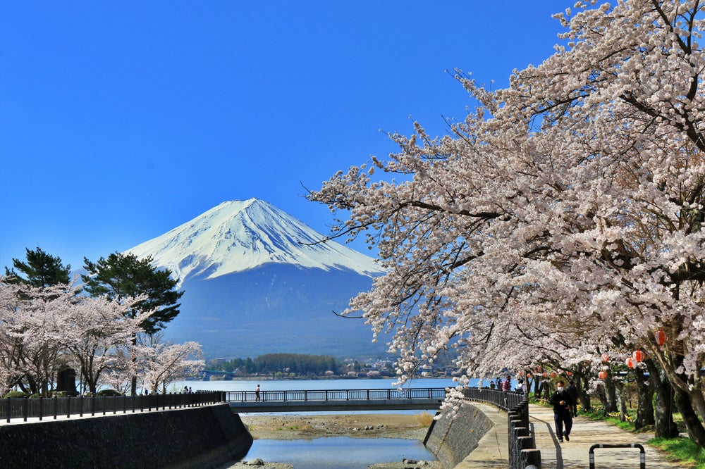 新倉山浅間公園には約650本の桜が植えられており、富士山と五重塔、桜を同時に眺めることができます。桜の季節は、この絶景を一目見ようと世界中から多くの観光客が訪れる場所です。