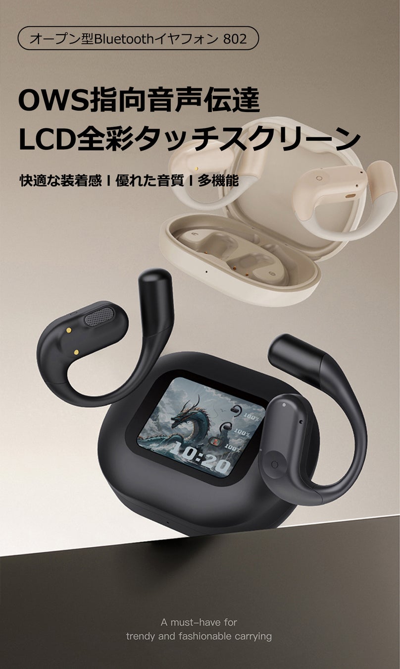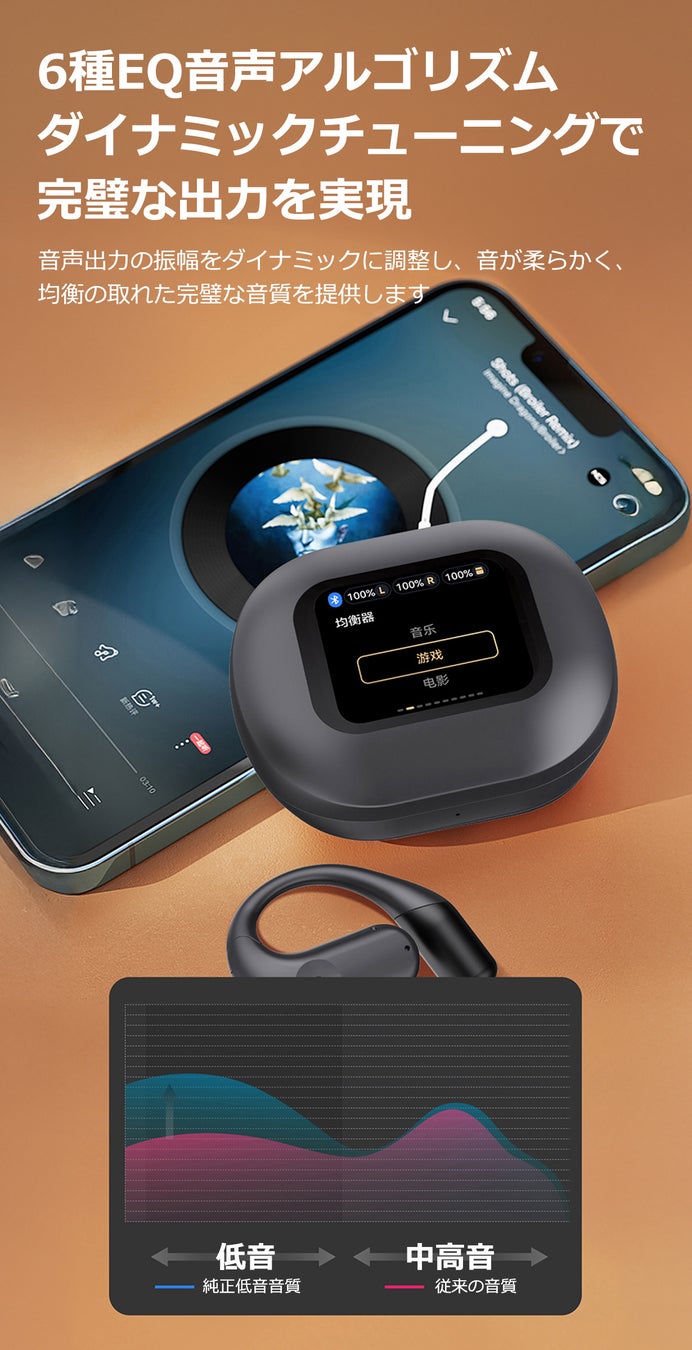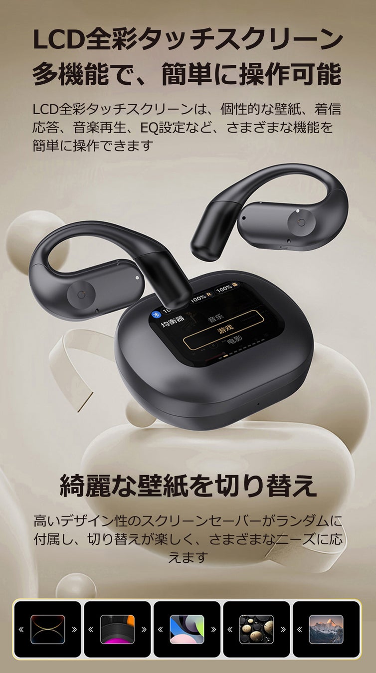 音楽の世界に没入する!10以上の機能・LCD全彩タッチスクリーンイヤホン!ENCノイズキャンセリング・HIFI音質・空間オーディオ、6つ音声モードで没入感ある音楽体験!人間工学設計で快適な装着感!