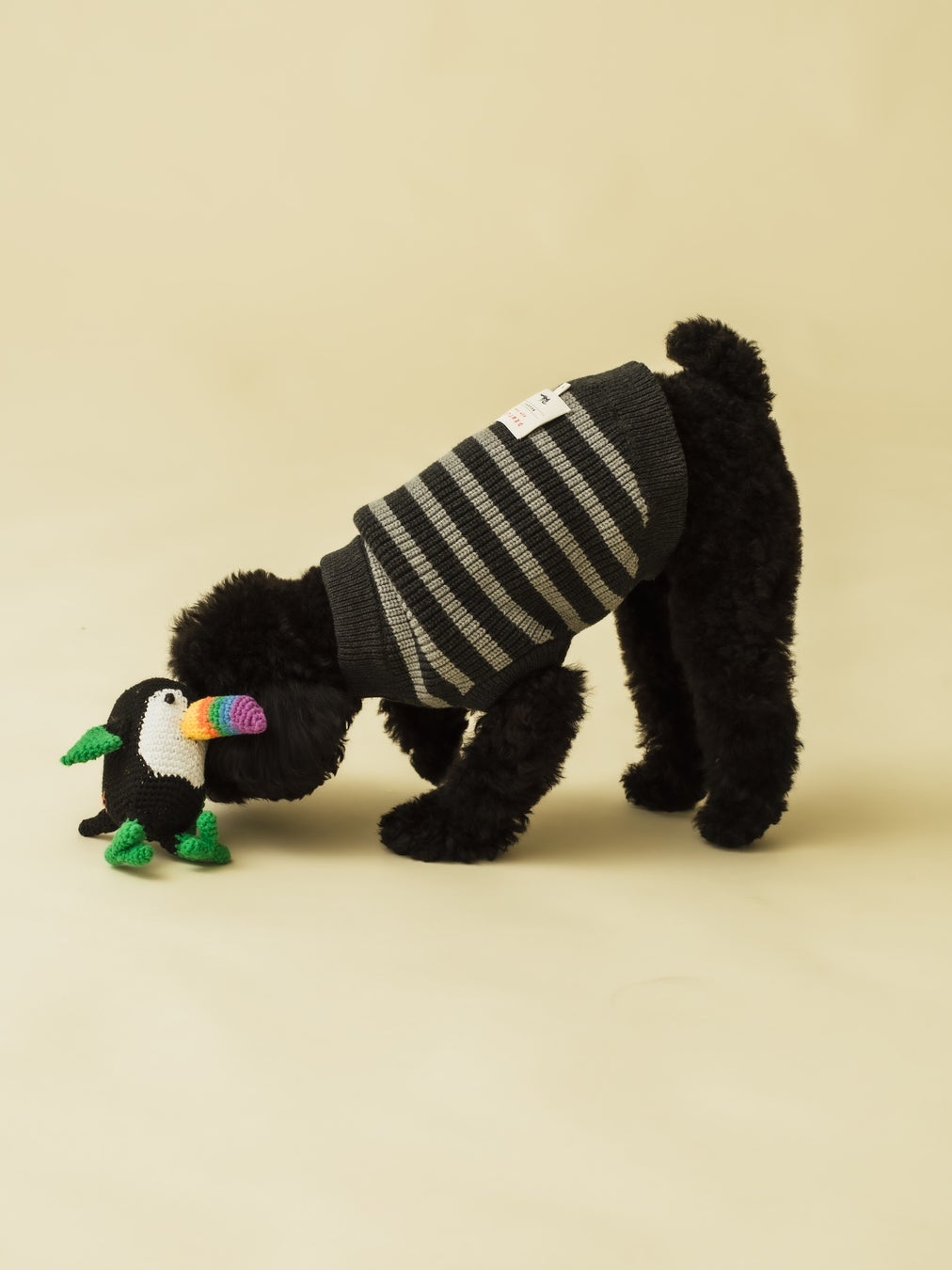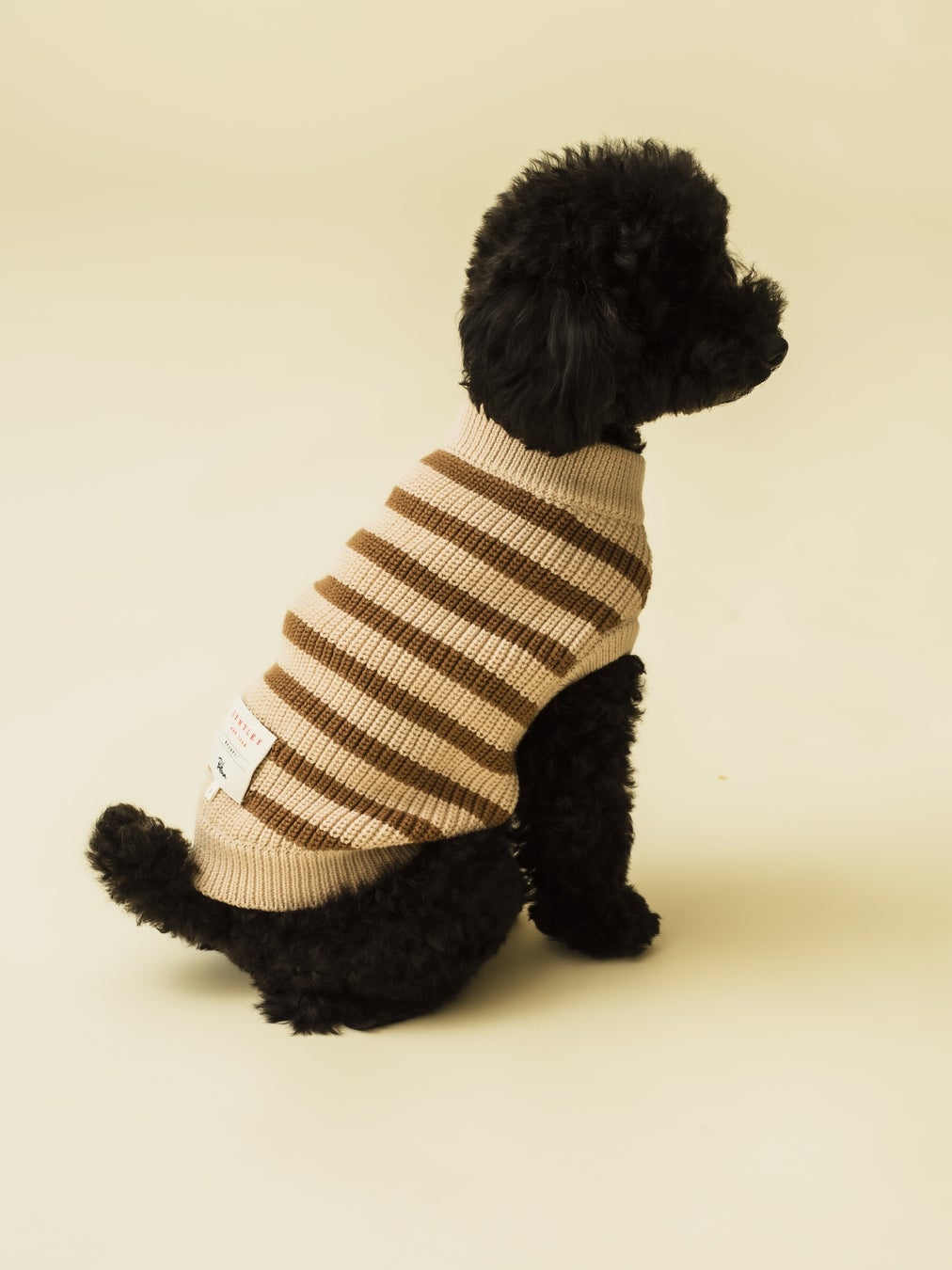 今回は特別に別注のボーダー柄セーターが登場いたします。カラーはどんな毛色でも合わせやすい落ち着いたトーンのシンプルなデザインとなっており、XS、S、Mのサイズ展開でご用意しております。