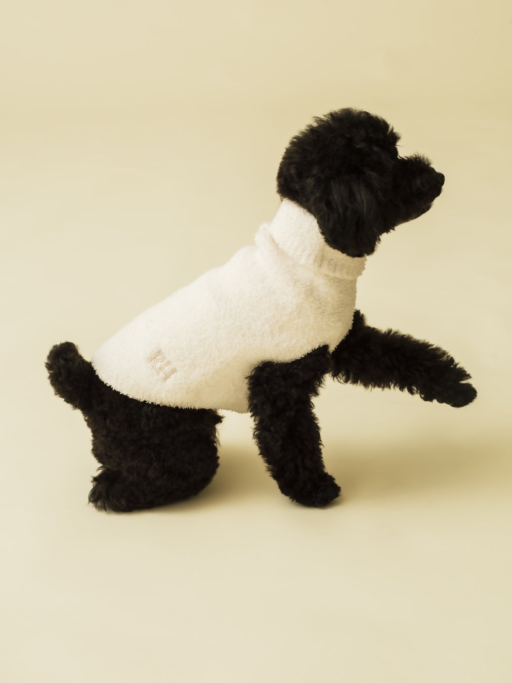 ペットセーターはリードホール付きでお散歩の時にも着用でき、お洗濯も可能なのでいつでも清潔にお使いただけます。今回は昨年ご好評いただいたRon Herman別注のペットニットに新色のCreamが登場いたします。ボディ色に馴染むライトベージュのRH刺繍がワンポイントとなっております。