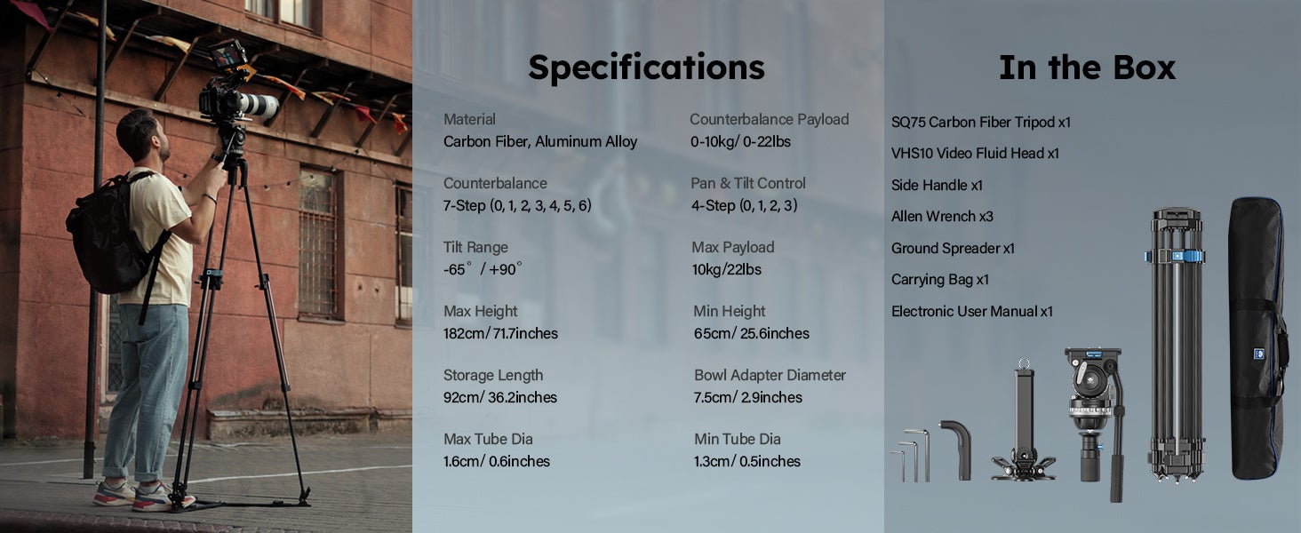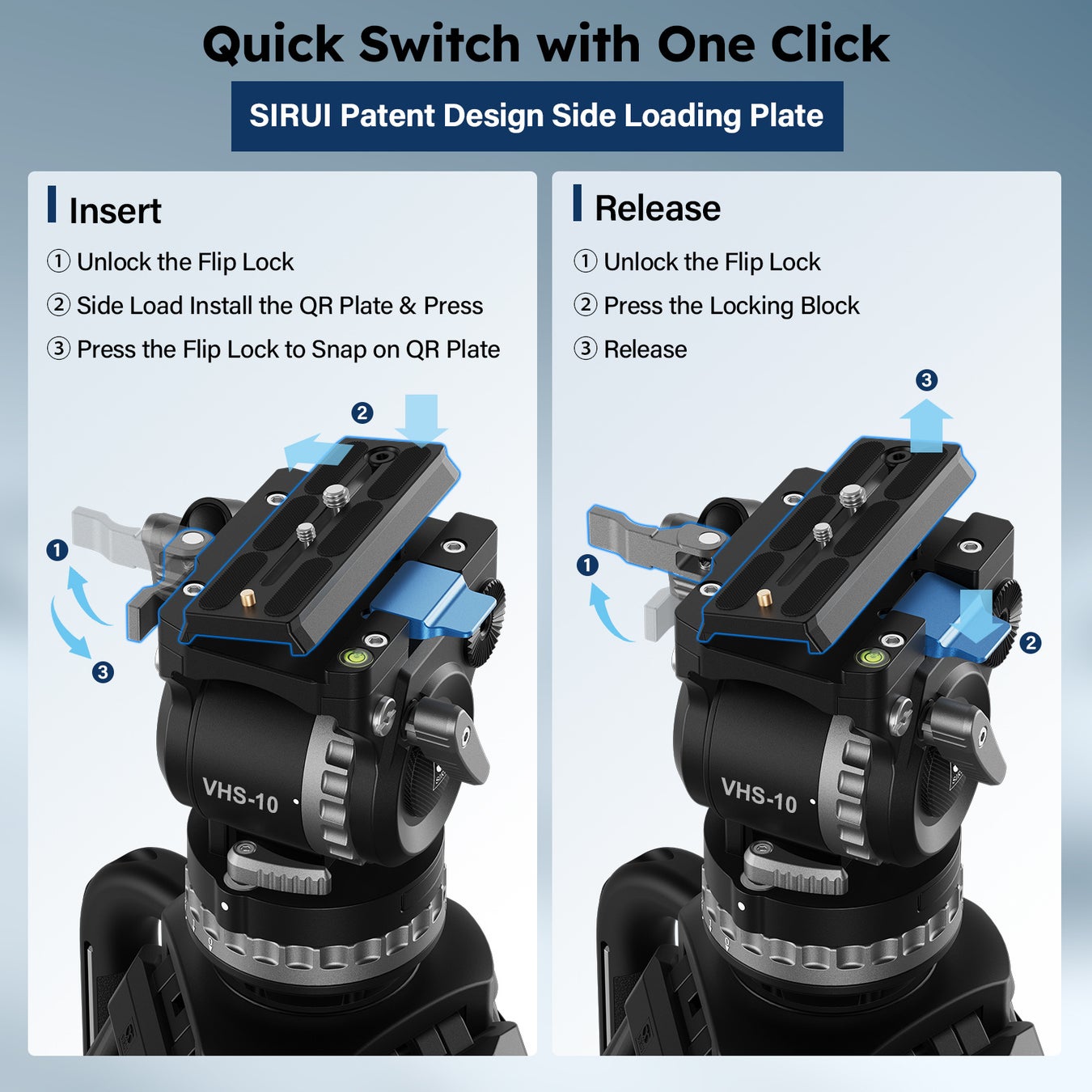 SQ75+VHS10は、SIRUI Rapid Systemの超安定性を誇る三脚キットです。強力なカーボンファイバーツインレッグチューブ、グラウンドスプレッダー、特許取得済みのサイドフリップロック、サイドローディングクイックリリースプレートにより、さらに安定性と柔軟性が向上しています。低コストで優れた操作性を提供します。