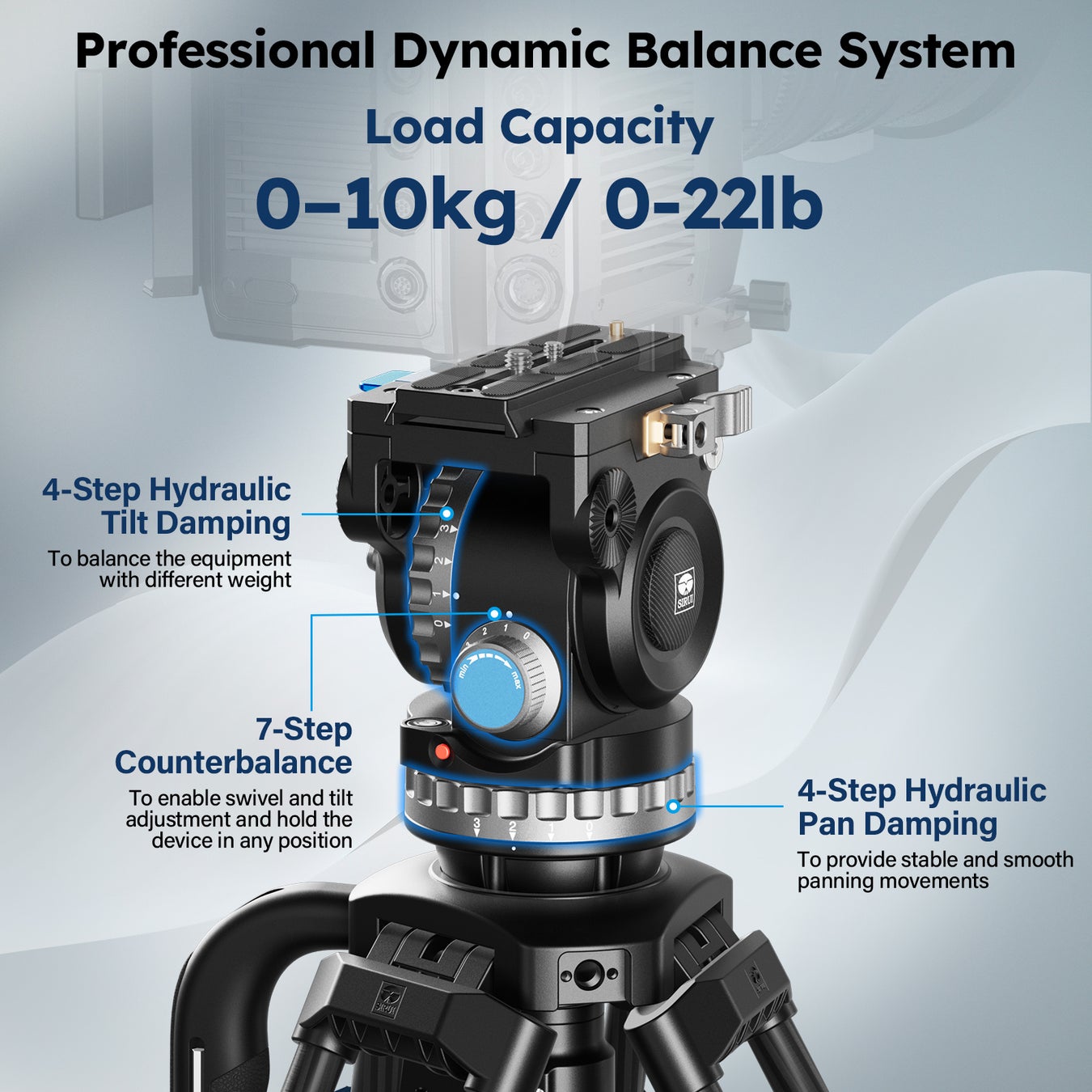 ほぼすべてのプロ用三脚は、さまざまな重量のカメラに合うようにカウンターバランス システムで設計されています。VHS10 の 7 段階のカウンターバランスにより、カメラを任意の位置で停止できます。また、耐荷重は 0 ~ 10kg です。