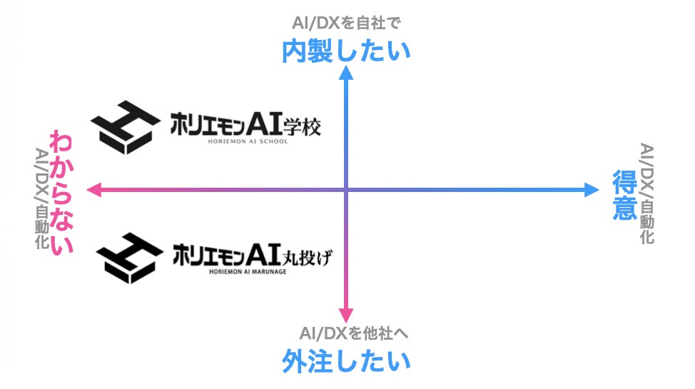 AI活用を進めたいが、社内の知識や時間、人材が不足している企業に代わり、ホリエモンAI学校がAI選定から実装・運用までをワンストップで支援します。