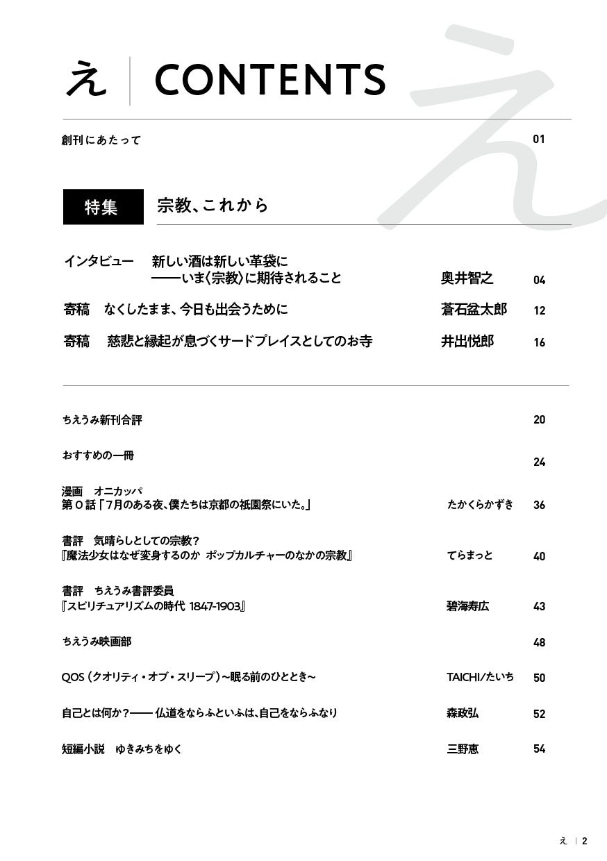 本誌が、宗教や精神文化にまつわる問いに向き合い、「これから」を考える一助となれば幸いです。