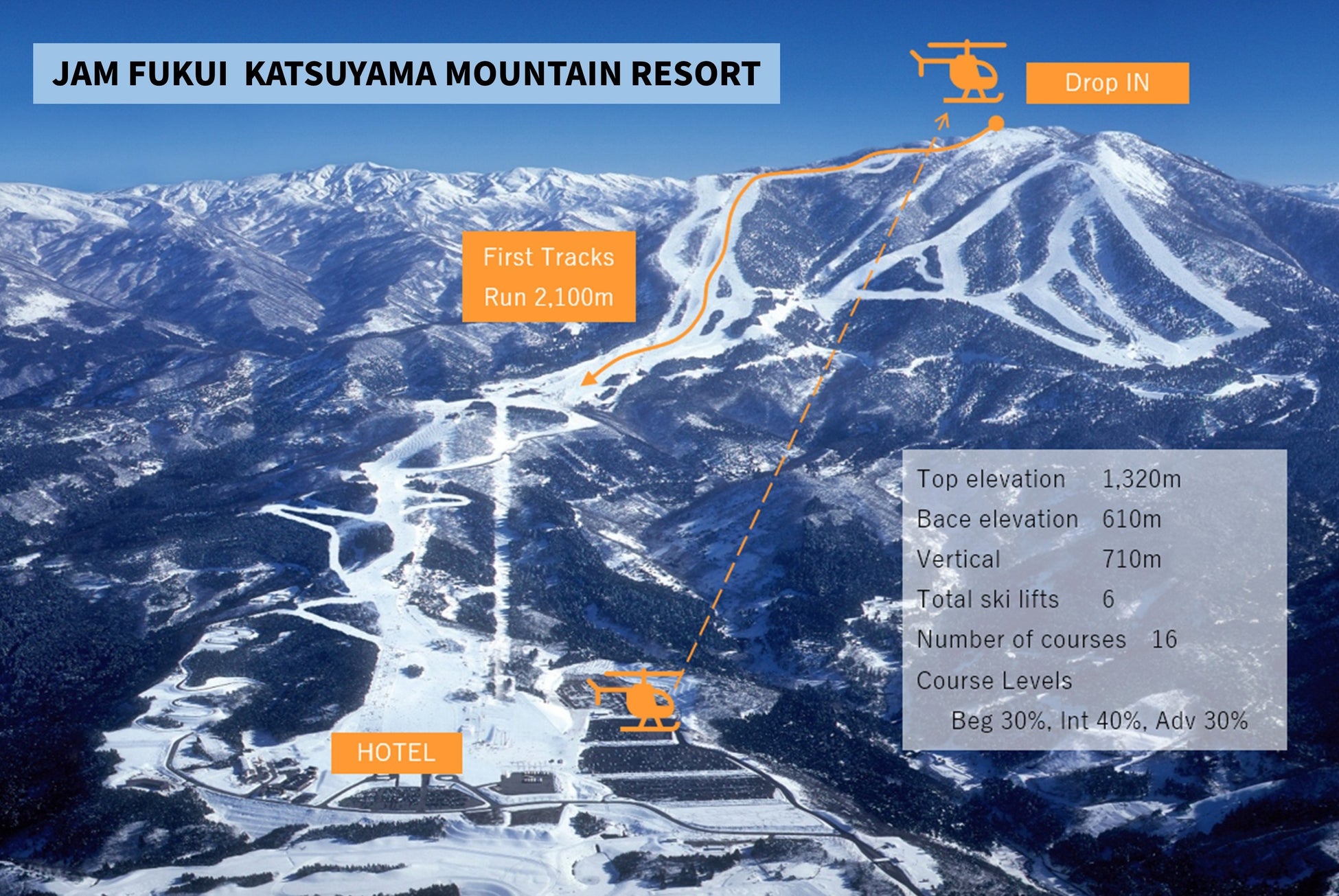 本ツアーは、移動と雪山体験を一体化したラグジュアリーな体験です。ヘリコプターで福井まで快適に移動し、西日本最大級のゲレンデ「JAM福井勝山マウンテンリゾート」の山頂エリア(標高1,320m)へ直行。まだ誰も滑っていない特別なコンディションで、その日最初の滑走を楽しめる“ファーストトラック”を体験できます。1日で非日常と冬の本質的な魅力を味わえるツアーです。