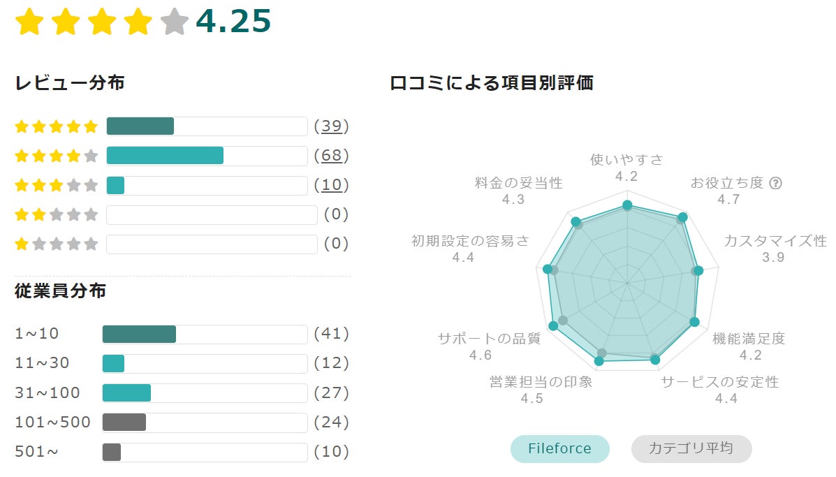 「BOXIL SaaS AWARD(ボクシル サース アワード)」は、SaaS比較サイト「BOXIL SaaS(ボクシル サース)」を運営するスマートキャンプが、優れたSaaSを審査、選考、表彰するイベントです。今回の「BOXIL SaaS AWARD Summer 2024」は、2023年4月1日〜2024年3月31日までの1年間に「BOXIL SaaS」上へ新たに投稿された口コミ約18,000件をもとに審査しています。今回「Fileforce」が受賞したオンラインストレージ部門の「Good Service」は、「BOXIL SaaS」上に投稿された口コミを対象に、各カテゴリで総得点の高いサービスに対して付与されるものです。