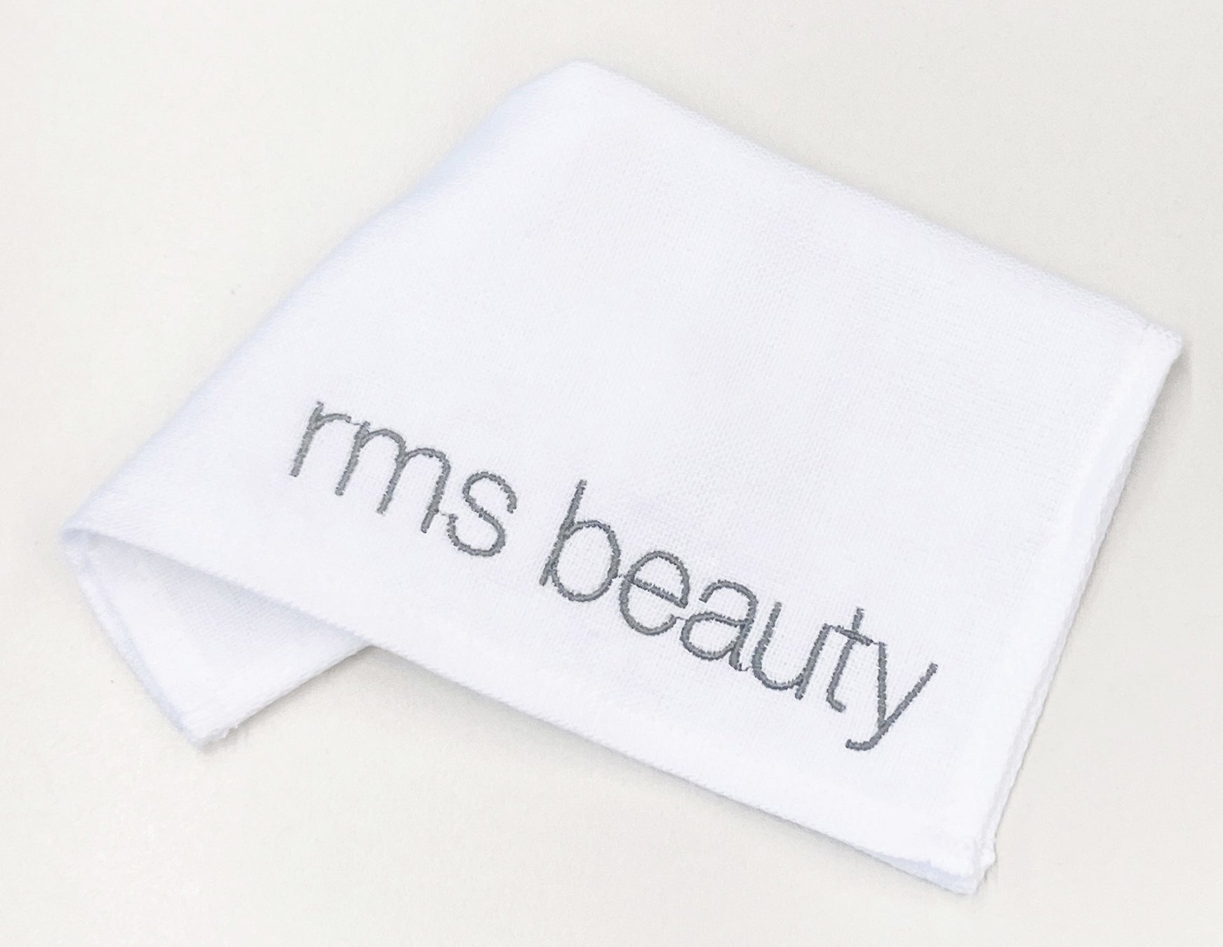 ふんわり柔らかく肌触りの 良い、吸水性に優れたミニ タオル。rms beautyのロゴ 刺繍がアクセント。
