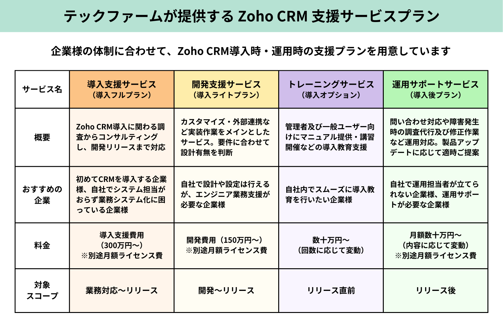 ■テックファームが提供するZoho CRM導入・運用支援
