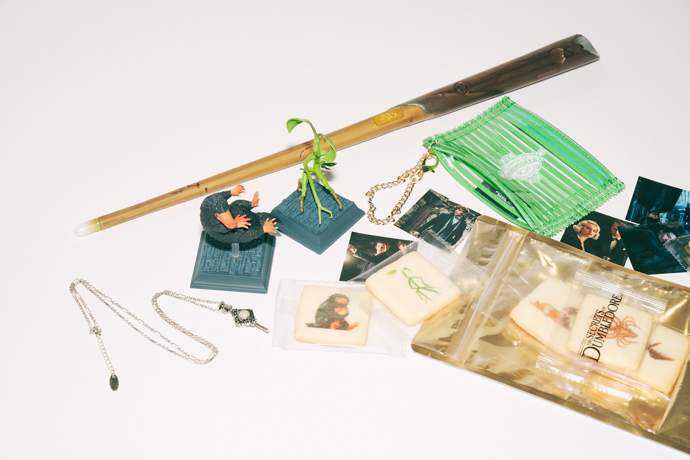 限定ポーチやトートバックの他、呪文を唱えると光るニュートの魔法の杖も販売します。