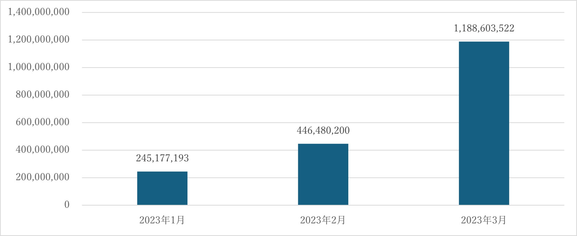 図13 2023年1月から2023年3月までの「地方創生」のワードを含む月別落札金額推移
