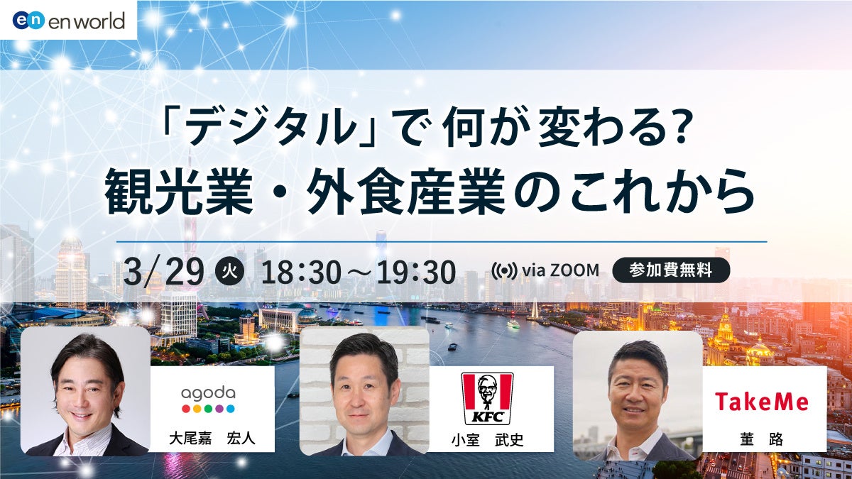 日本最大級のグローバル人材に特化した人材紹介会社エンワールド・ジャパン株式会社(本社:東京都中央区、代表取締役社長:ヴィジェイ・ディオール)は、観光業と外食産業における「デジタル施策」をテーマに、3月29日(火)18時半よりZOOMにてウェビナーを開催いたします。