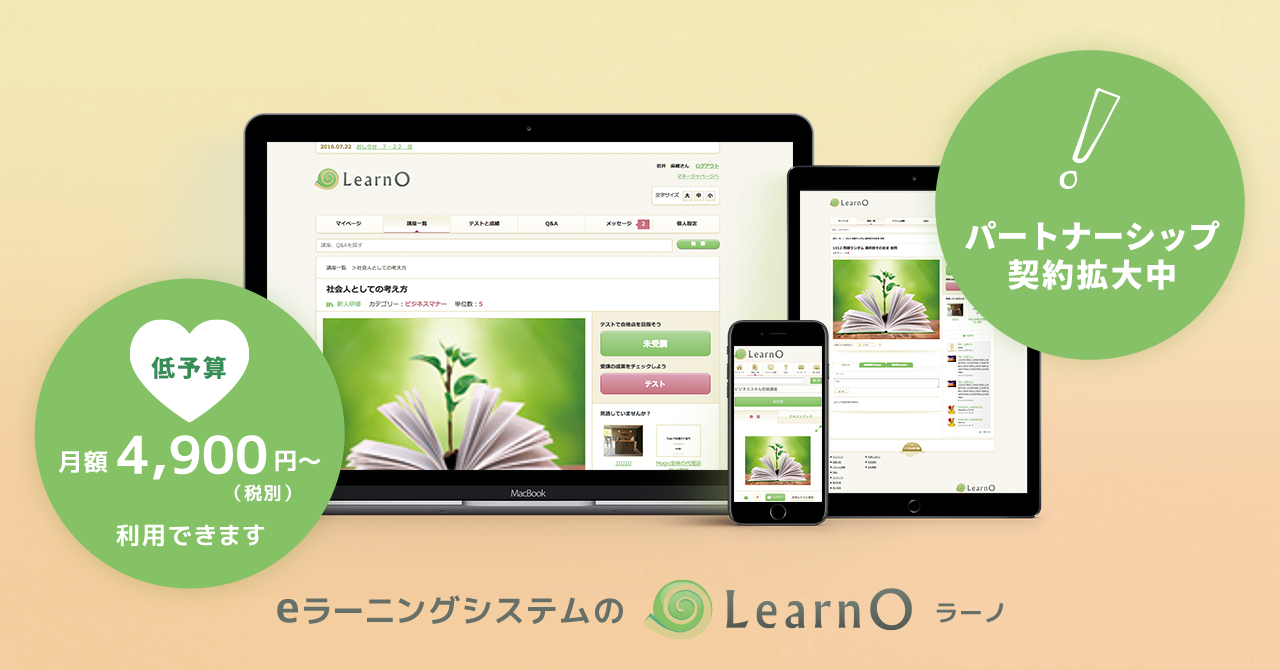 LearnOなら開発コストをかけずに自社eラーニングシステムを持てる!