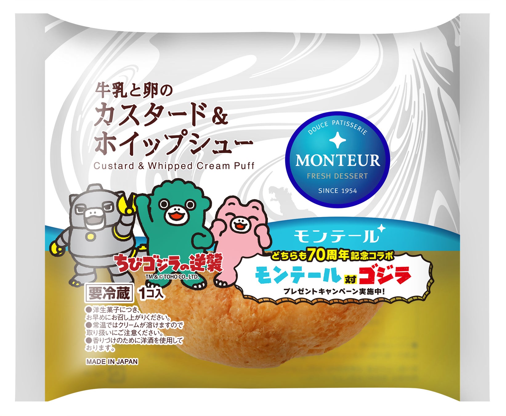 今回のコラボは、洋生菓子メーカーのモンテールと映画でお馴染みのゴジラが互いに70周年を迎えることや、共に幅広い世代から愛され続けてきた存在であるという共通点から実現しました。