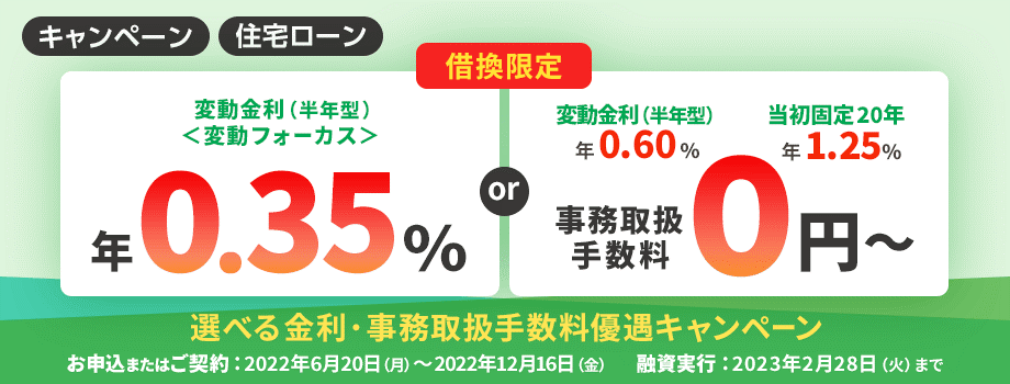 住宅ローン「借換限定 選べる金利・事務取扱手数料優遇キャンペーン」実施