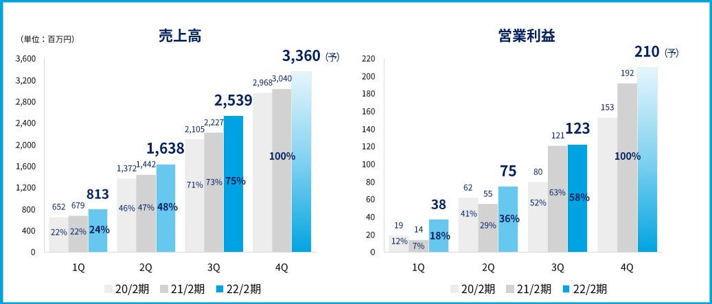 売上高は、コロナ禍が長期化するなかで、Web広告が引き続き牽引し、前年同期比+14.0%と増収を継続する結果となりました。また、営業利益は、Web広告運用費用や採用コスト、業務委託費等の増加により、前年同期比+1.7%で進捗しています。