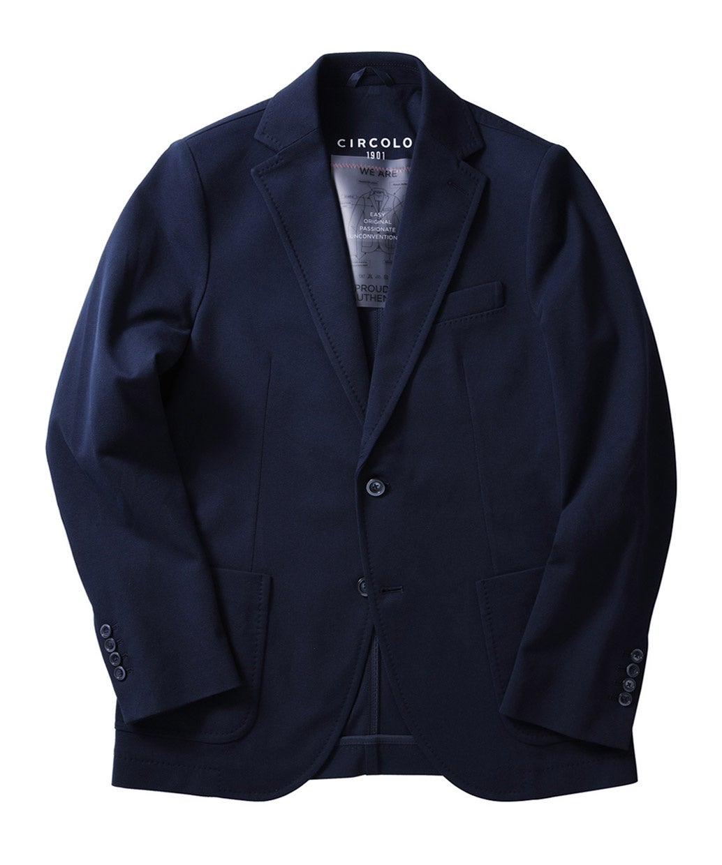 チルコロが独自に開発したストレッチ性・通気性の高い、鹿の子織りのジャージー生地で仕立てたジャージージャケット。コットンをベースにストレッチ素材をミックスした糸で鹿の子状に織る事で、ストレッチ感に加え通気性も確保し、立体的な織りの表面感が美しく、柔らかな肌当たりとしなやかな生地感が魅力のジャケット。ラクチンな着心地の綺麗めジャケットとなっています。