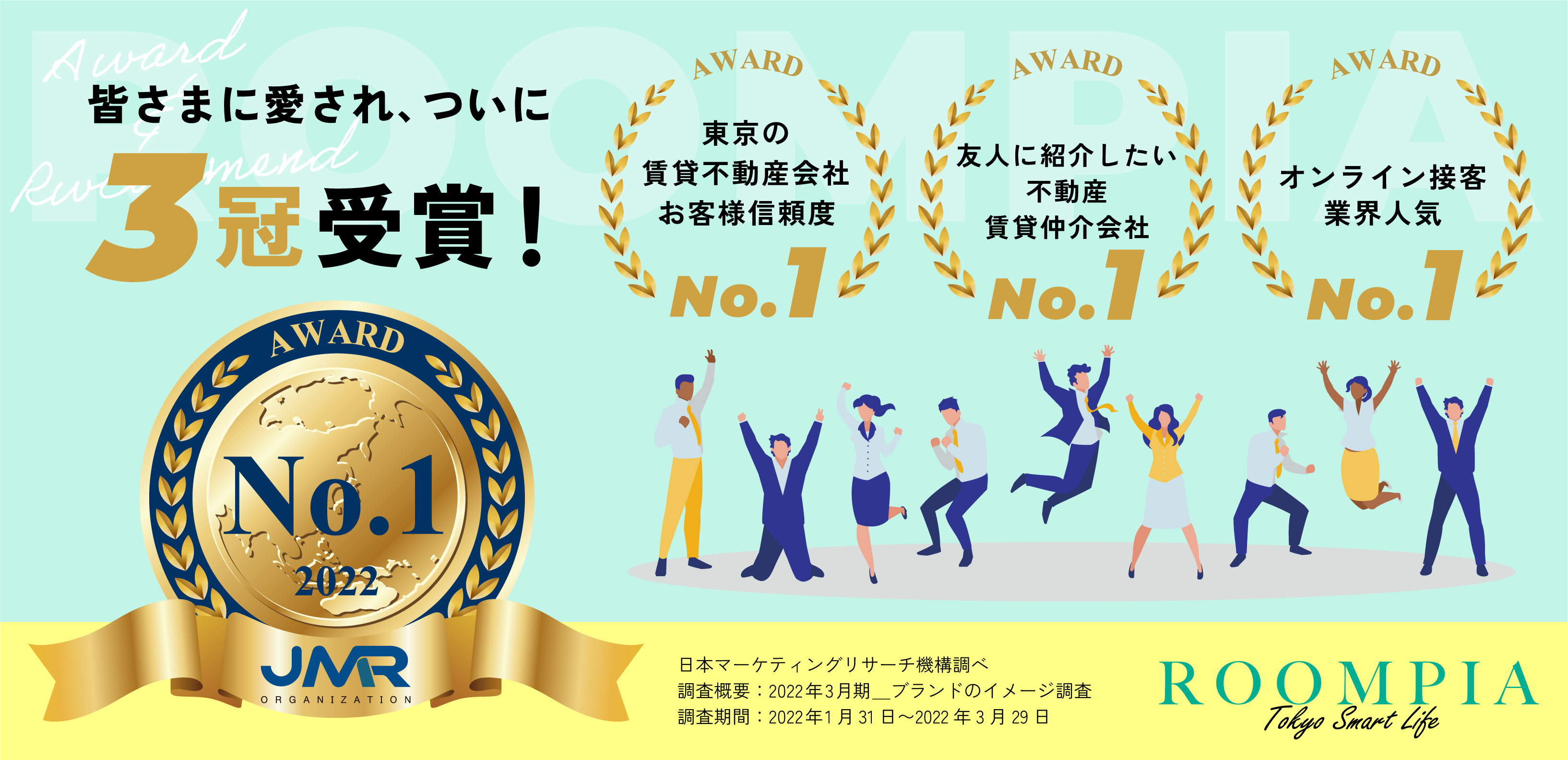 この度、2022年3月期のブランドのイメージ調査※において、『友人に紹介したい不動産賃貸仲介会社 No.1』『オンライン接客 業界人気 No.1』にて新たに2部門で第1位を獲得し、3冠受賞いたしましたことを、お知らせします。