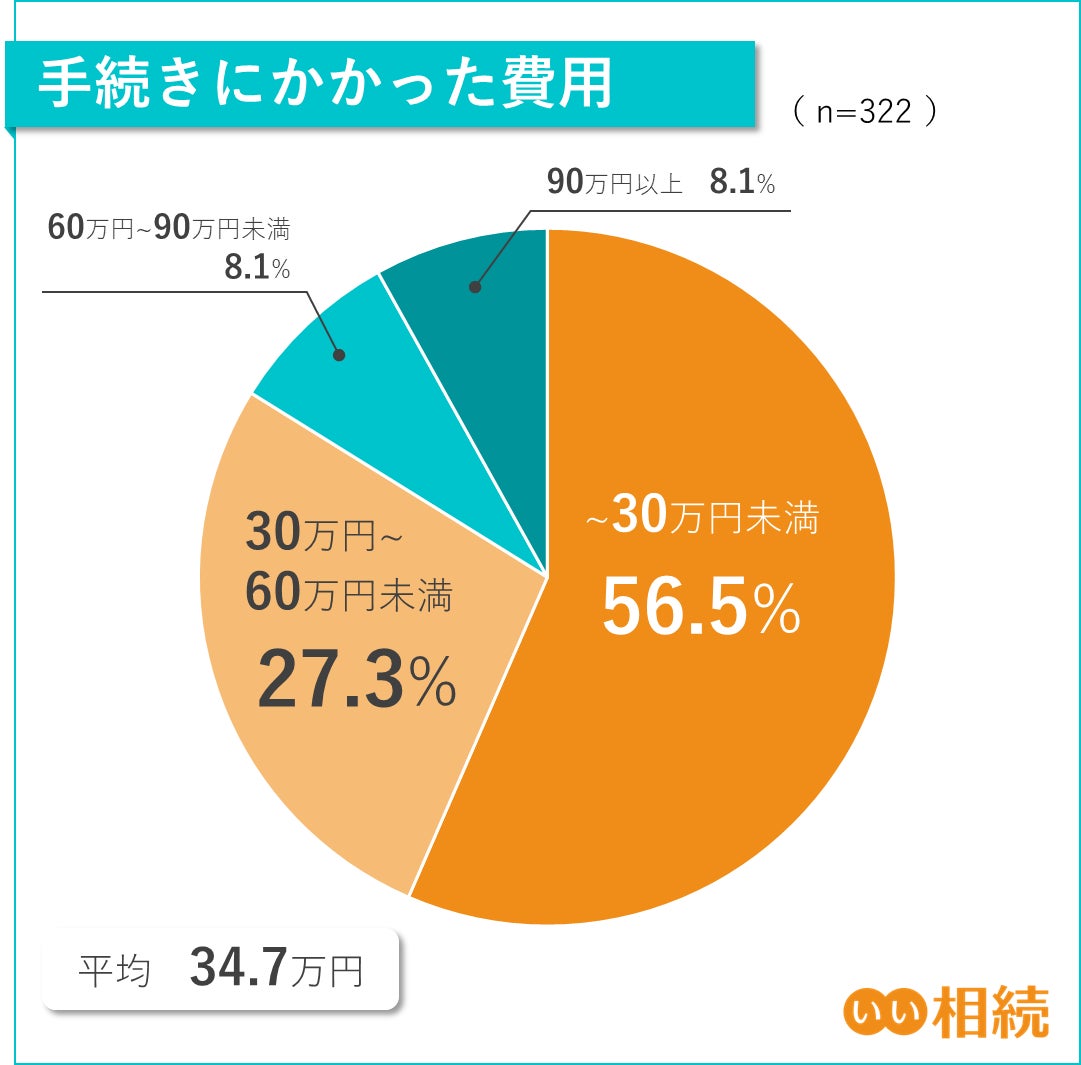 【費用】相続手続きにかかった費用は、過半数が「30万円未満」と回答。平均費用は34.7万円。