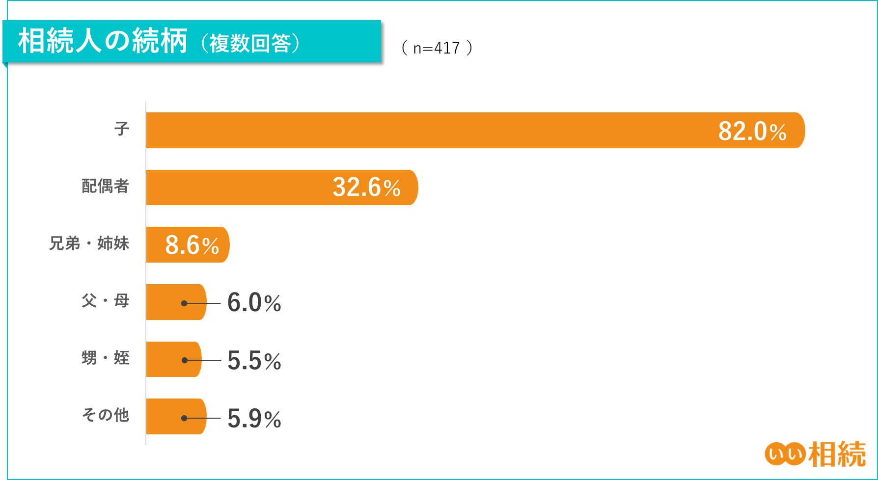 【相続人】相続人は「子」が最多。次いで「配偶者」「兄弟・姉妹」。