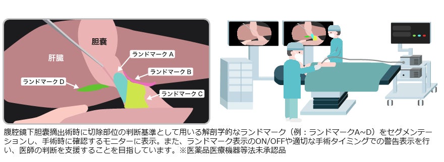 【腹腔鏡下胆嚢摘出術向けAIを用いたランドマーク術中教示システムの概要】
