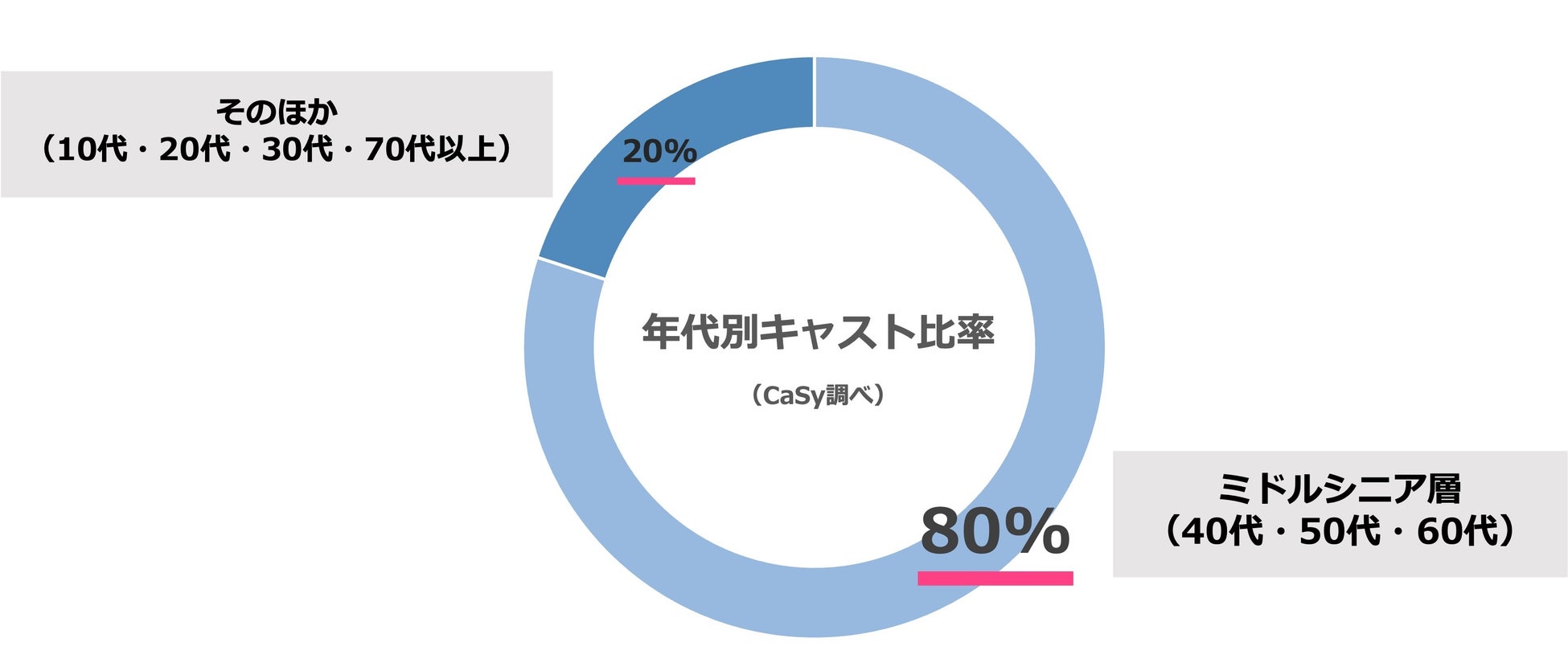 キャストの年齢層は40代・50代・60代が厚く、「しゅふ(主婦・主夫)の経験」を価値に変え、家事代行という職業で活躍しています。特に活躍され、かつ高稼働のキャストは50代が最も多いということが、カジーの調査で明らかになりました。