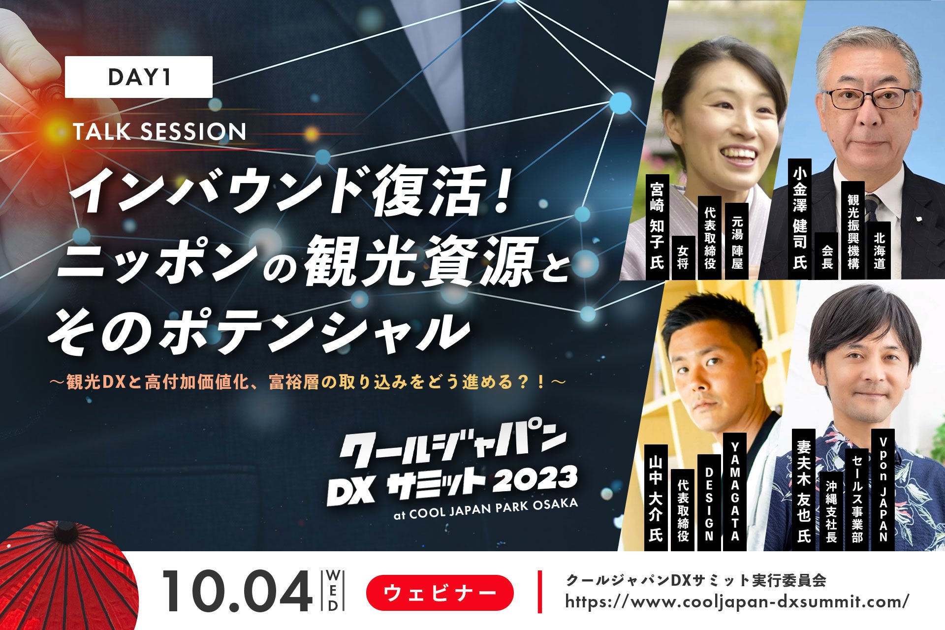 クールジャパンDXサミット実行委員会(運営事務局:Vpon JAPAN株式会社、本社:東京都新宿区、代表取締役社長:篠原 好孝、以下Vpon JAPAN)は、2023年10月4日(水)~10月5日(木)に開催するクールジャパンDXサミット2023において、4日(水)にオンライン開催するDay1 01 Talk Sessionテーマと登壇者をご紹介します。