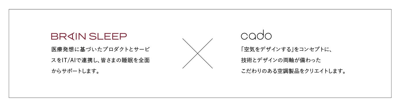睡眠に悩みを持つ人が多い現代において、スリープテックの重要度は年々増しています。今回、睡眠研究を基にした睡眠ノウハウを持つブレインスリープと、美しい “空気” と 心地良い “空気感“ を創出するプロダクトに強みを持つcadoの2社が共創したからこそ、今までにない新しい睡眠デバイスを生み出すことが出来ました。