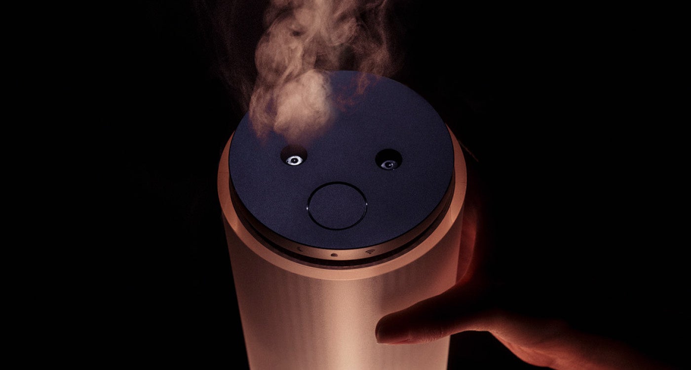 透明感のある柔らかい質感、操作ボタンや電源ライトなど家電としての要素をなるべく排除し環境との調和、人と寄り添うモノの形を追求。自然光を再現した形が、空気を柔らかい光と音で包み込みます。