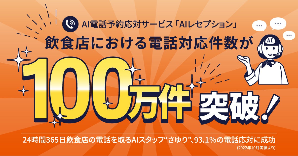 24時間365日受付可能な飲食店向けAI電話予約応対サービス「AIレセプション」の対応件数が100万件を突破