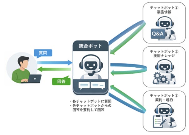 こうした状況で利用者は、どのチャットボットに質問すべきかを都度判断する必要があり、その結果「どのAIに聞けばよいか分からない」「部門をまたぐ質問ができない」といった不便さを解消しきれず、AIが十分に活用されないケースも生じていました。