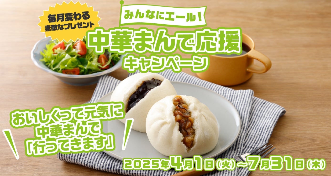 応援テーマに応じて、毎月変わる素敵なプレゼントが1,160名に当たる「みんなにエール!中華まんで応援キャンペーン」~2025年4月1日(火)から2025年7月31日(木)まで~