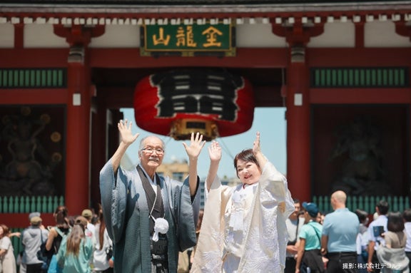 今回のモニターツアーで選ばれたのは、『浅草で花嫁衣裳を着て、二人の思い出を残したい』と切望していた、理重さん(60代)と浩さん(80代)。お二人は理重さんが45歳の時に出会い、以来15年以上事実婚カップルとして寄り添ってきました。