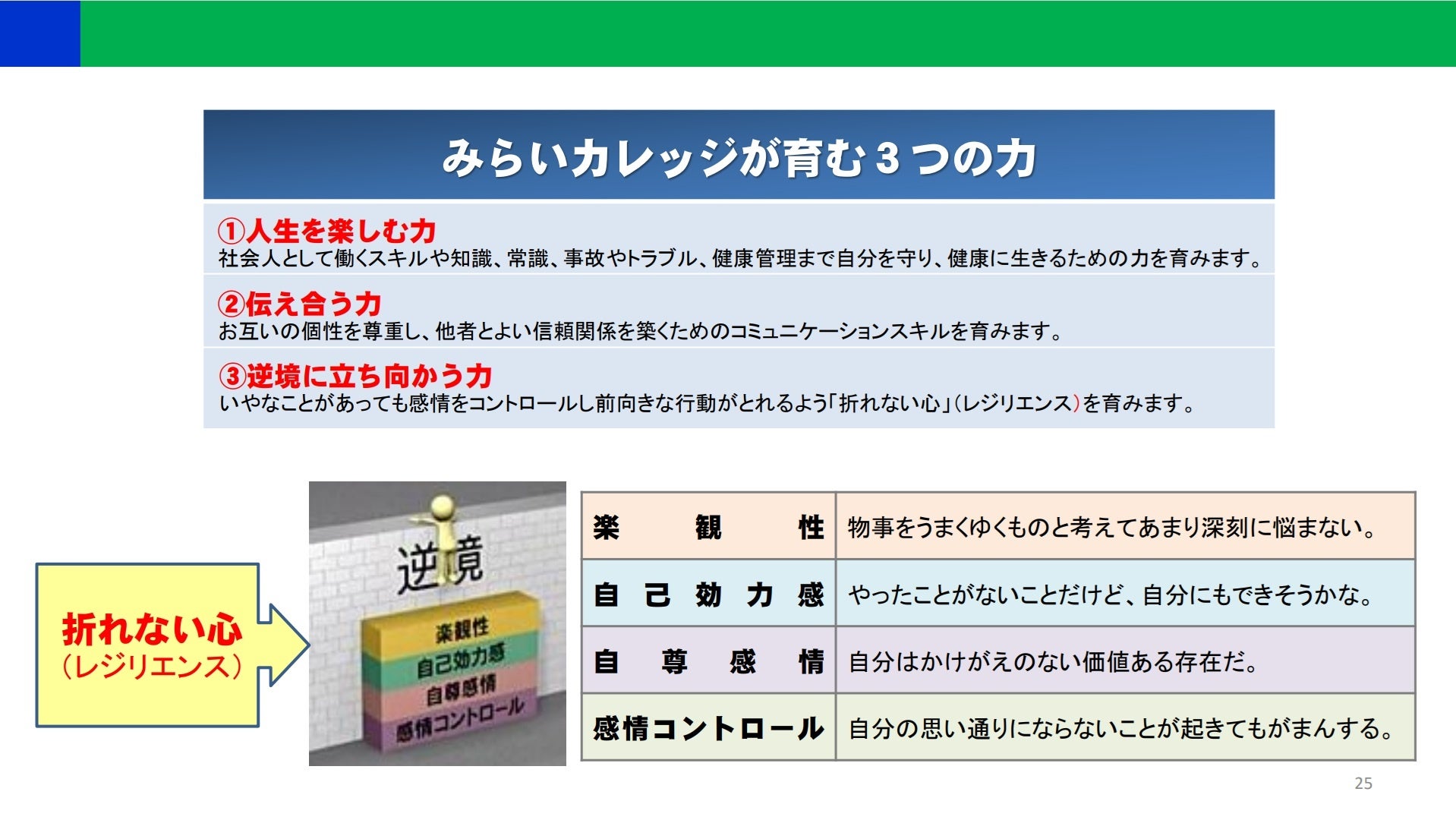 自立した社会生活を営むために必要な非認知的能力(自分と向き合う力、自分を高める力、他者とつながる力)は、集団生活で人の中で揉まれてこそ、体験的に身につくことから機会を持つ必要が大事である。