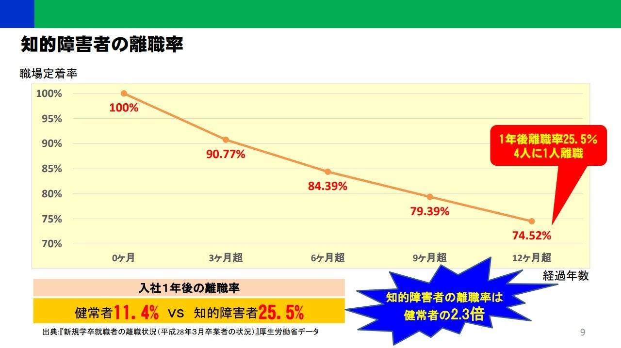 障害者権利条約に則り知的障害者の高等教育を保障することにより、就職率が上がり、離職率が下がり、さらには福祉予算が削減する。