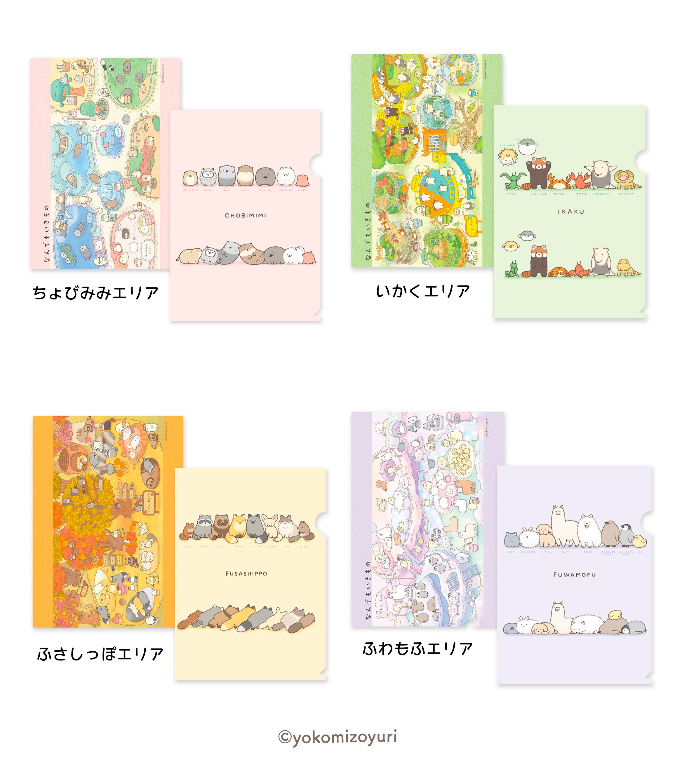 今回新たにラインナップに加わった「ダイカットステッカーミニ(12種)」「クリアファイル(4種)」「ガーゼミニタオル(3種)」「アクリルヘアクリップ(3種)」「マルチポーチ(3種) 」の5アイテムと、