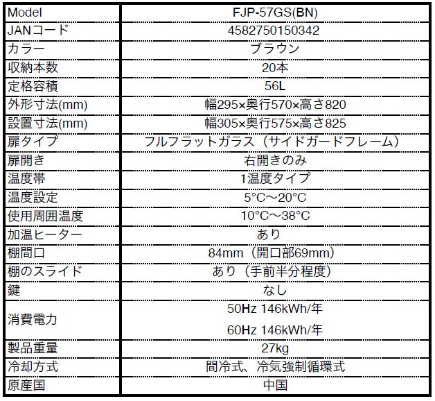 「FJP-57GS」は、フォルスタージャパンのラインナップの中で最も小型となる20本収納モデルです。フォルスターブランドの新商品としての品質基準をクリアしており、初めて購入されるワインセラーとして、またエントリーモデルの決定版としても大変おすすめです。